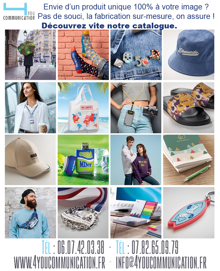 01Oct1 octobre 2025 Catalogue Fabrication Sur Mesure 4you2025-10-01T16:18:27+00:00 Besoin d’un renseignement, d’un devis ? Contactez nous par mail info@4youcommunication.fr Share this post Facebook Twitter LinkedIn Google + Email