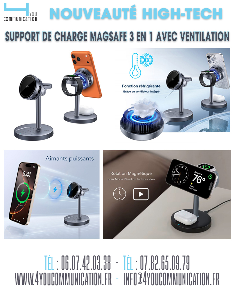 29Oct29 octobre 2025 Nouveauté High-Tech : Chargeur induction MagSafe ventilé 4you2025-10-29T17:04:00+00:00 Besoin d’un renseignement, d’un devis ? Contactez nous par mail info@4youcommunication.fr Share this post Facebook Twitter LinkedIn Google + Email