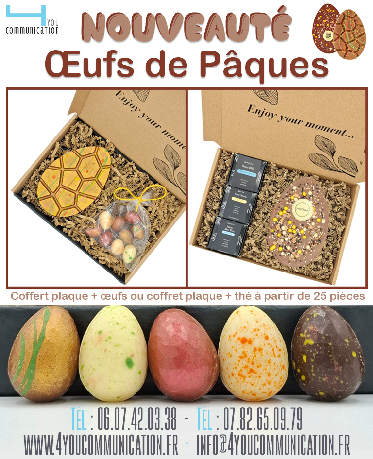 17Fév17 février 2026 Œufs de Pâques 4you2026-02-17T11:38:20+00:00 Besoin d’un renseignement, d’un devis ? Contactez nous par mail info@4youcommunication.fr Share this post Facebook Twitter LinkedIn Google + Email