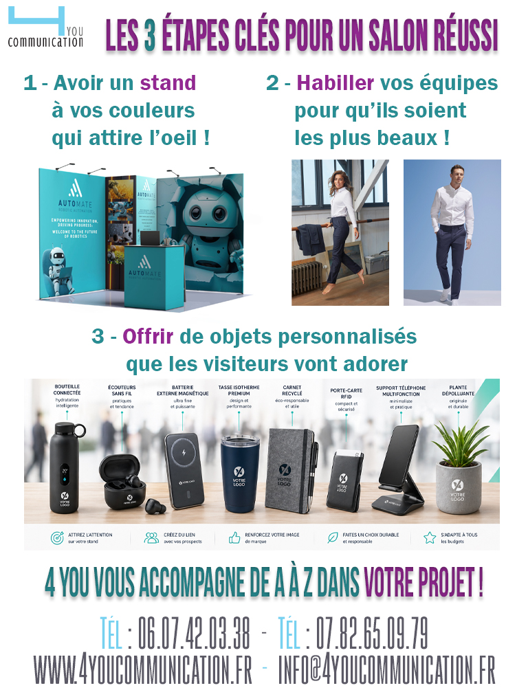 29Avr29 avril 2026 Pour un salon réussi 4you2026-04-29T10:02:52+00:00 Besoin d’un renseignement, d’un devis ? Contactez nous par mail info@4youcommunication.fr Share this post Facebook Twitter LinkedIn Google + Email